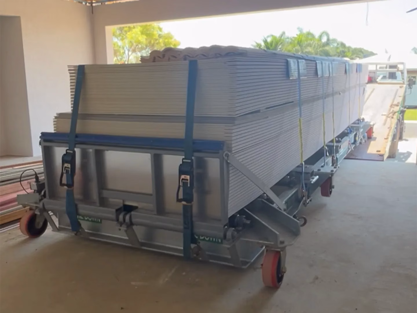 Tilt N Roll leases locally built plasterboard delivery trolleys, custom-designed in FNQ to make moving sheets faster, safer, and easier on site. Backed by real delivery experience, our trolleys are weatherproof solution that simplifies unloading, ensuring efficiency, safety, and single-person operation.